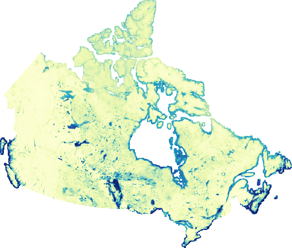 A national map of flood susceptibility or flood prone areas based on patterns of historic flood events as predicted by an ensemble machine learning model. The recommended use is national, provincial or regional scale and can be used as a guide for identifying areas for further investigation. This dataset, while processed and available at 30m cell size, is not recommended for use at the pixel or street level, given the uncertainty in the modelling process and the variability of results as discussed in https: